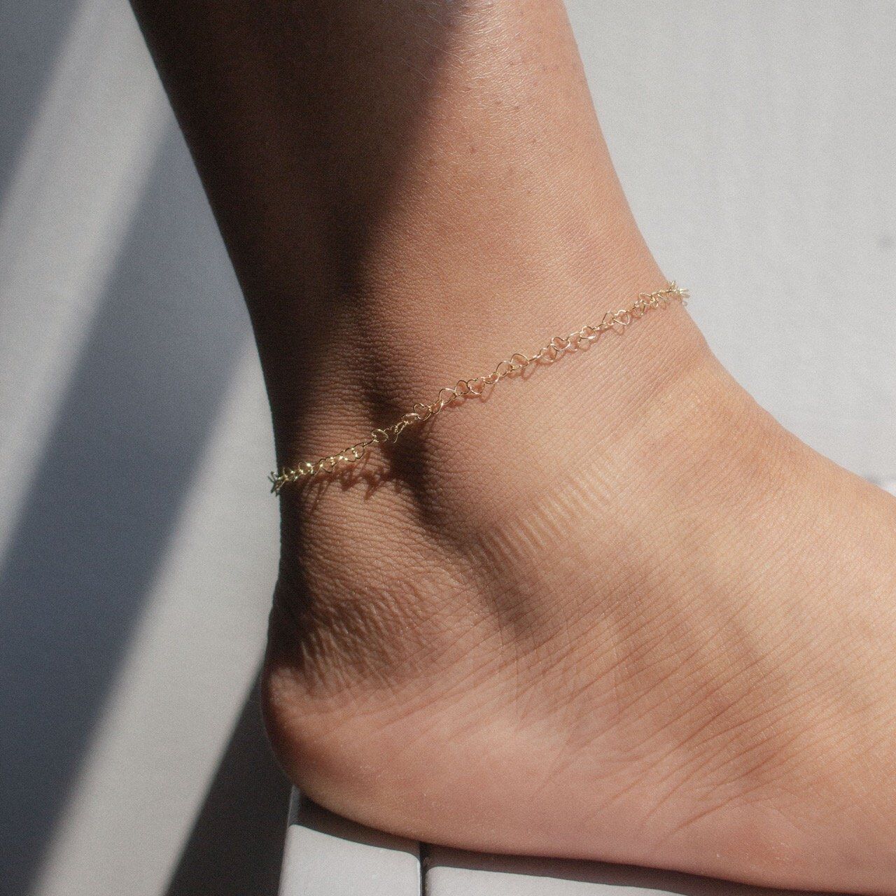 10K Yellow Gold Heart Anklet 3mm